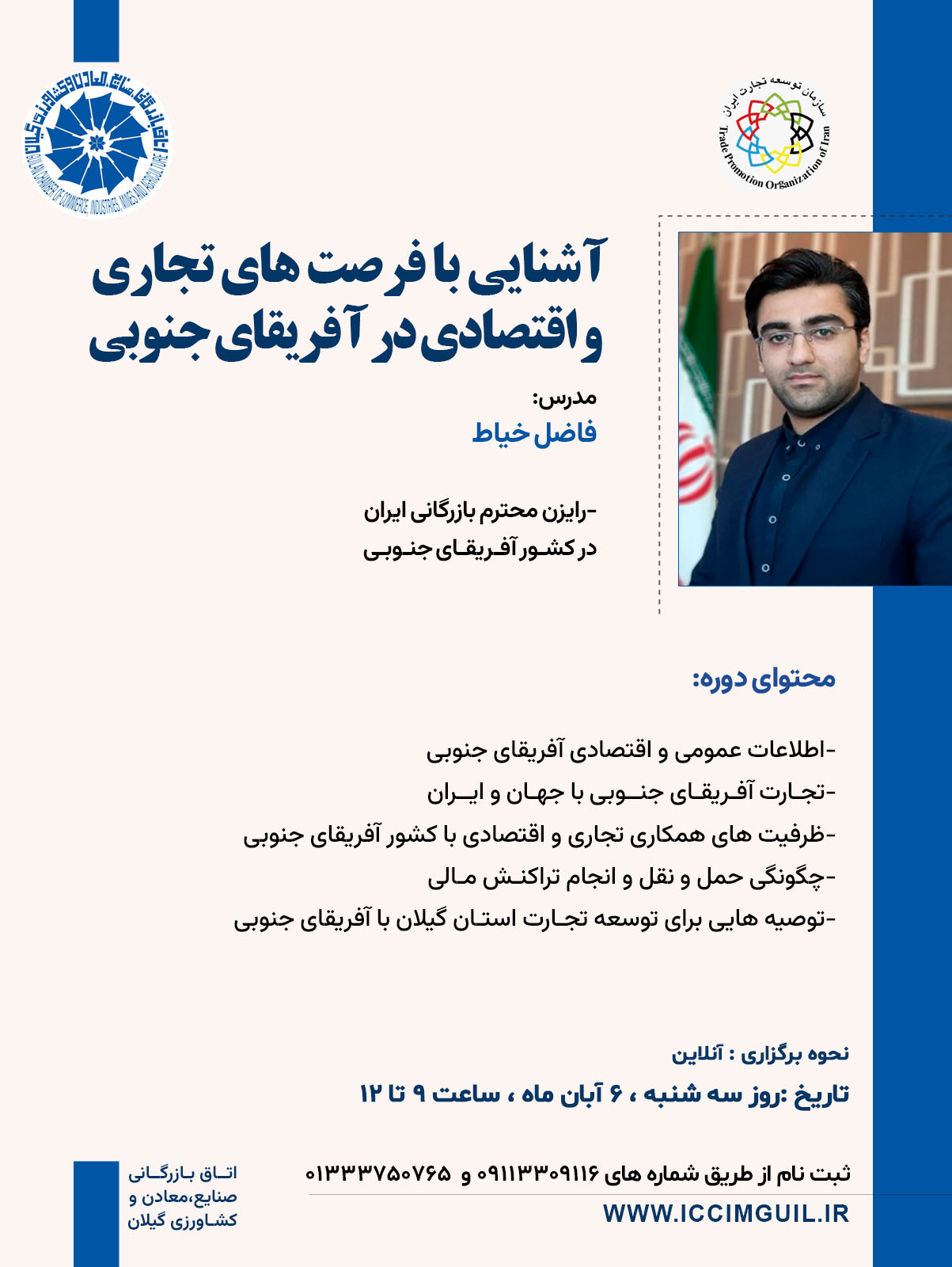 واحد آموزش اتاق بازرگانی گیلان برگزار مینماید: کارگاه آموزشی مجازی آشنایی با فرصتهای تجاری و اقتصادی در آفریقای جنوبی