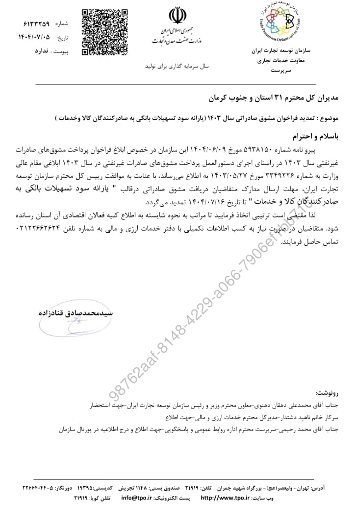 تمدید فراخوان پرداخت مشوق صادراتی سال 1403